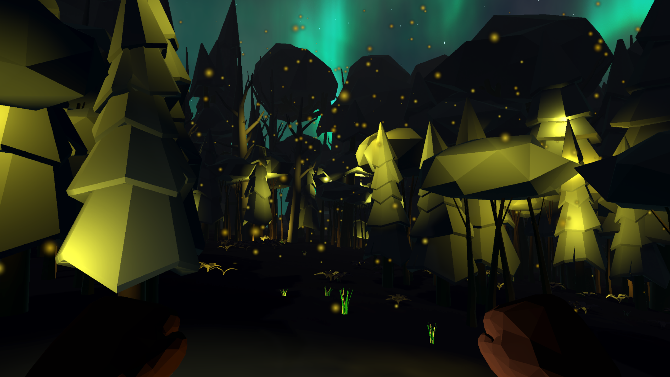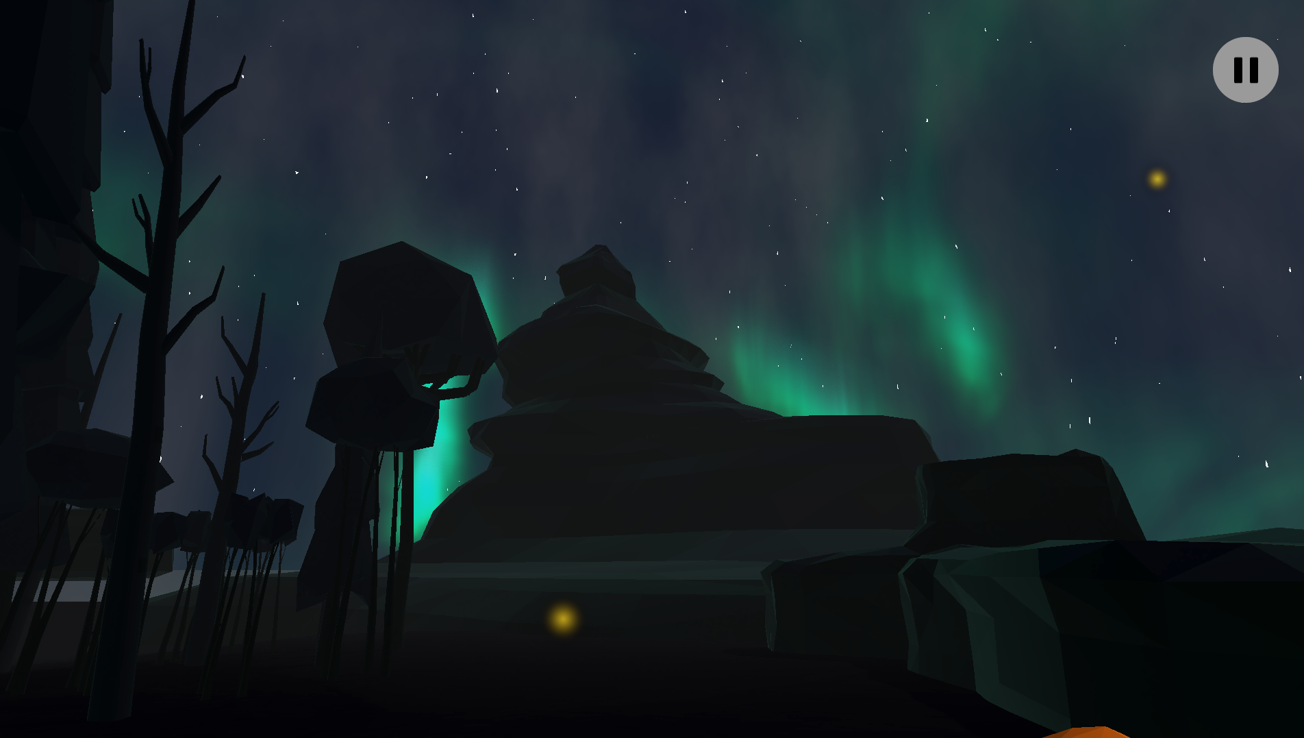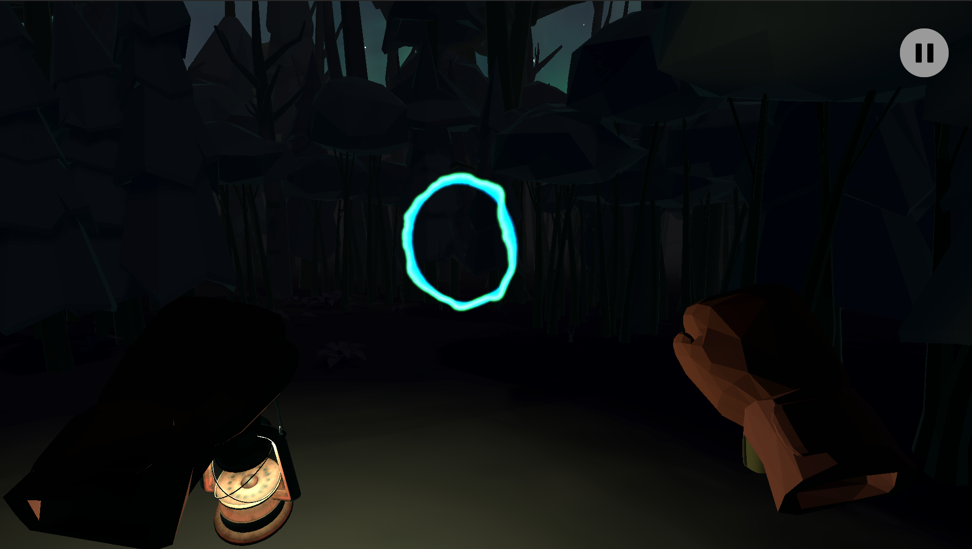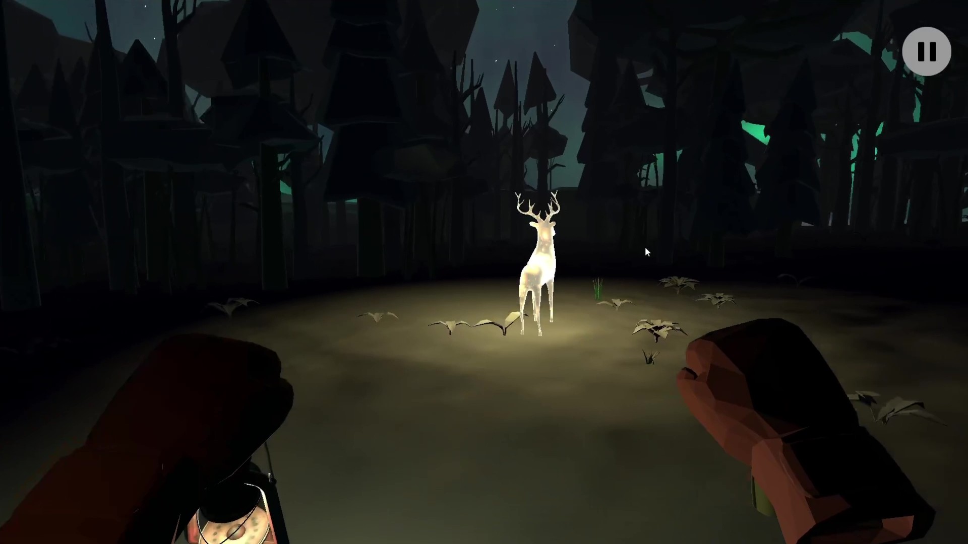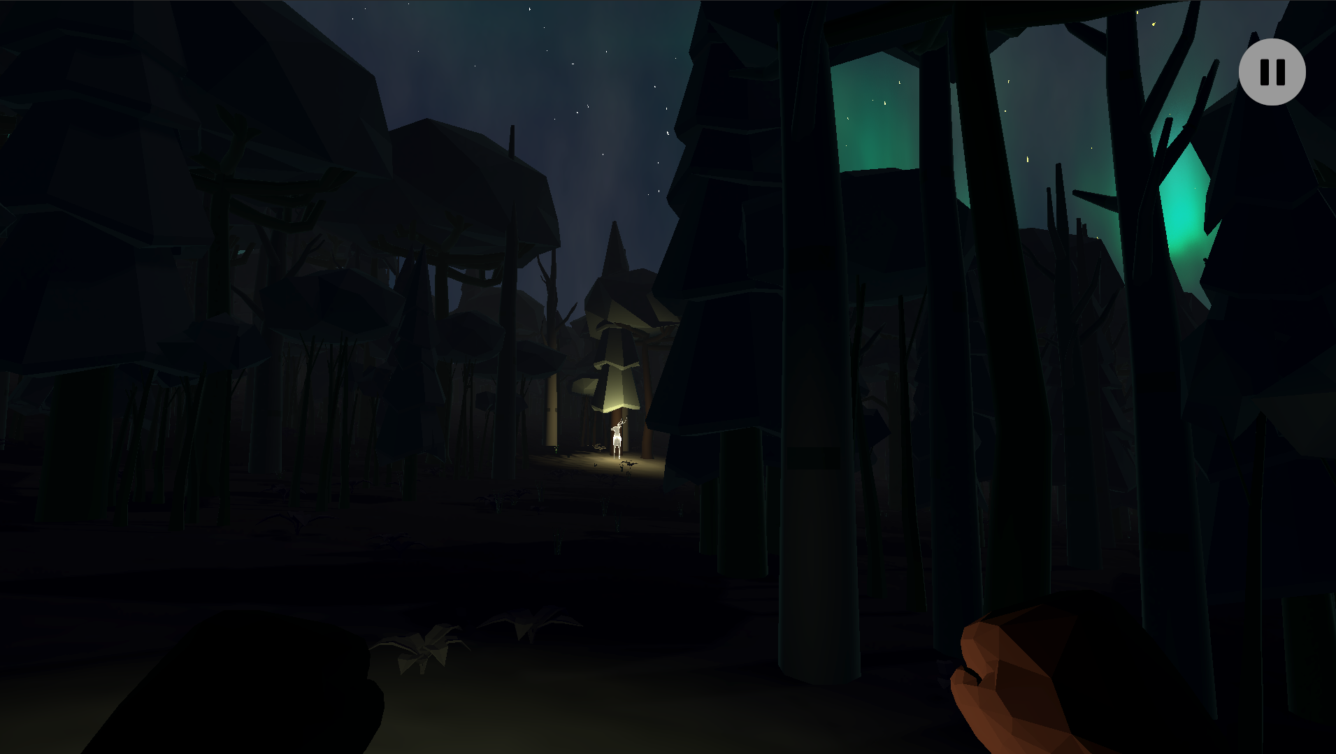 You are a traveler, lost in a forest swallowed by polar night, where the trees twist into a maze and your lantern barely pushes back the dark. A small bell rests in your hand. When you ring it, a mysterious reindeer emerges from the shadows, its glow guiding you toward the way out.